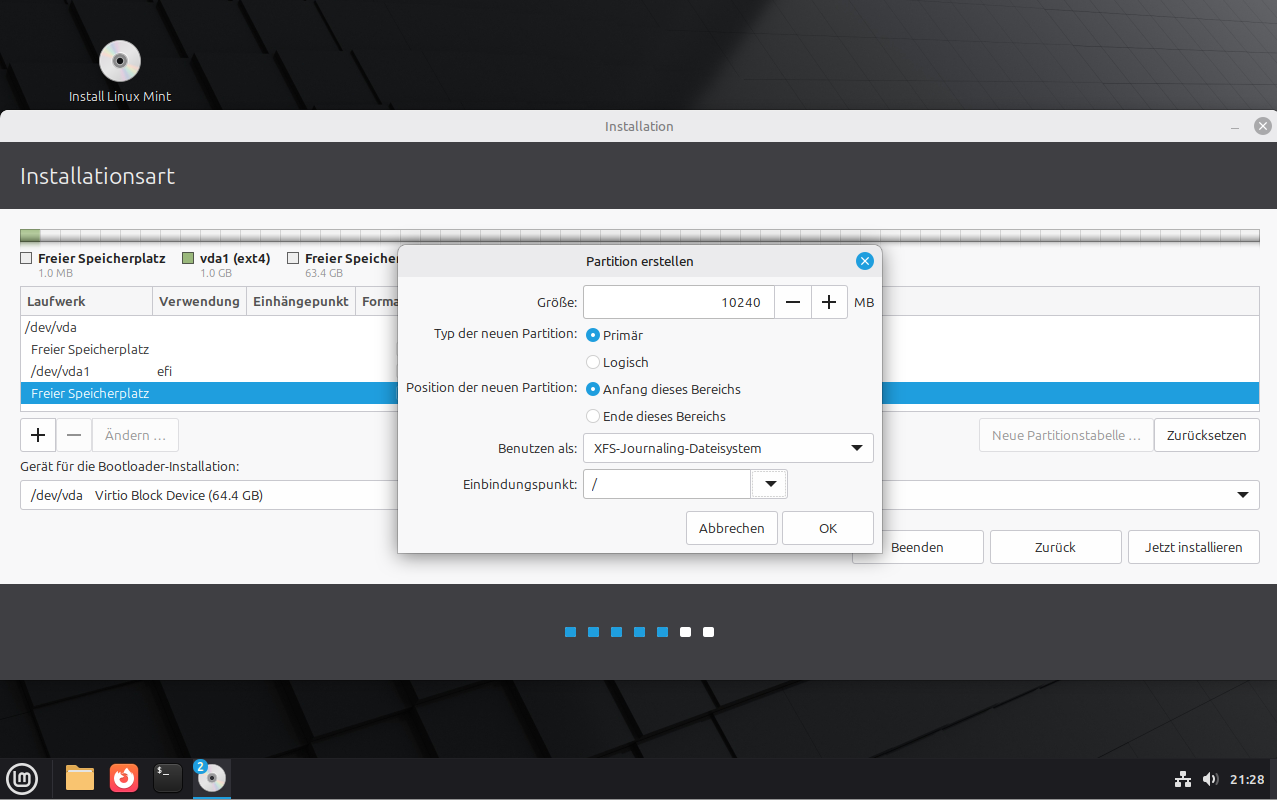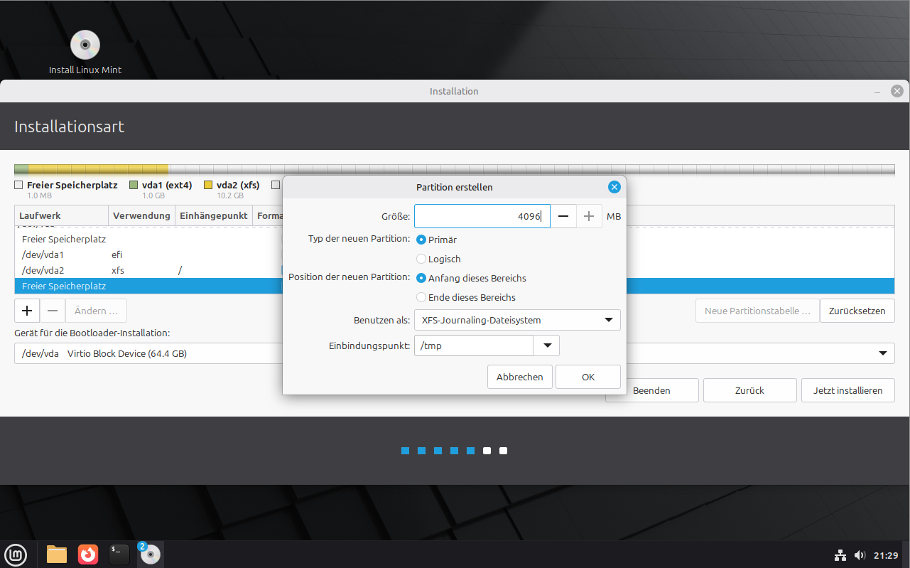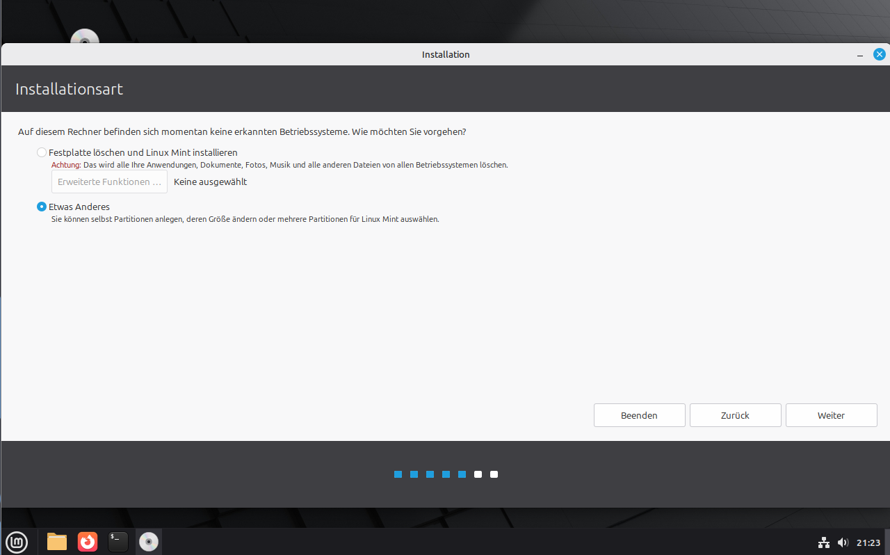 Linux Mint Erweiterte Installation
